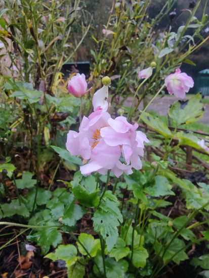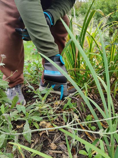 We split into two groups: three volunteers focused on carefully weeding the beds, while the rest continued the patient task of pruning the wisteria and Old Man’s Beard along the terrace. The garden offered its own sensory rewards — the strong, distinctive scent of the Salvia, the vibrant spikes of bistort, and the soft, delicate blooms of Japanese anemone still holding their colour into late October.