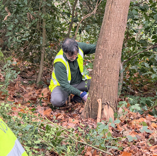 Others cleared the holly we had left loose on the woodland floor and tackled a new holly stand which was growing tall and straggly immediately beneath a large, mature, native tree. As one of shrubs making up the stand was a female, and so had some bright red berries, we didn’t want to remove it completely. Not are the berries attractive, but more importantly they provide much-needed food for birds when there is little else to eat. How do we deal with the holly in a situation like this where it is casting shadow on the woodland floor, preventing the growth of vegetation, and impacting the oak tree? Well, that’s simple - we reduce the height of the holly to form a lower, denser shrub!